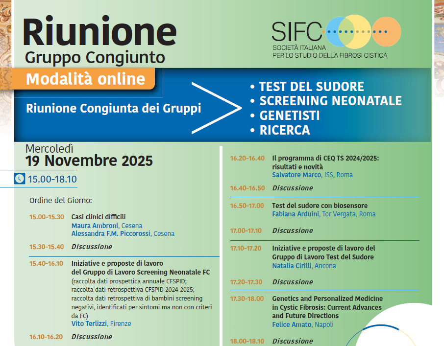 RIUNIONE WEB 19 NOVEMBRE 2025 del GRUPPO CONGIUNTO SIFC:TEST DEL SUDORE, SCREENING NEONATALE, GENETISTI, RICERCA